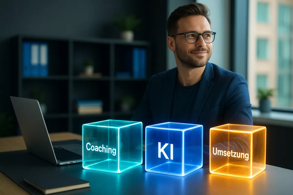 Die "Meistermacher Umsetzungsgarantie" stellt mit der 3-Säulen-Methode (Coaching, KI, Software) sicher, dass du nicht nur Theorie bekommst, sondern wirklich sichtbar wirst.